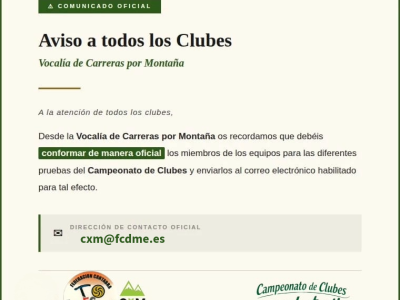 Los clubes participantes deberán remitir la conformación oficial de sus equipos al correo habilitado por la federación antes del inicio de cada prueba.
